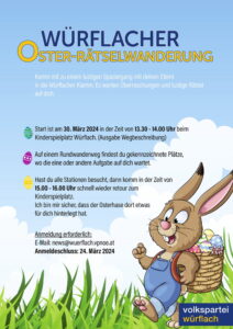 Start der Osterrätselralley ist von 13:00 bis 14:00 Uhr beim Kinderspielplatz Würflach!