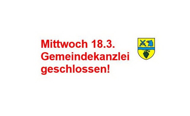 Die Gemeindekanzlei ist am Mittwoch den 18.3.2026 geschlossen!